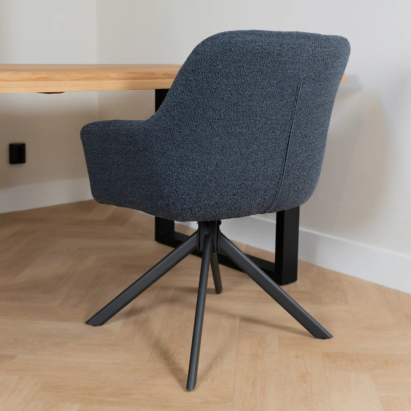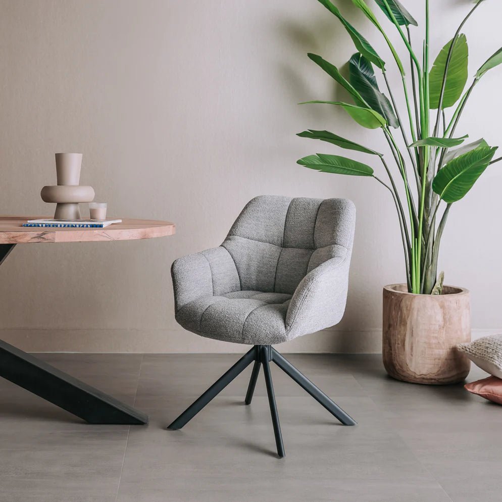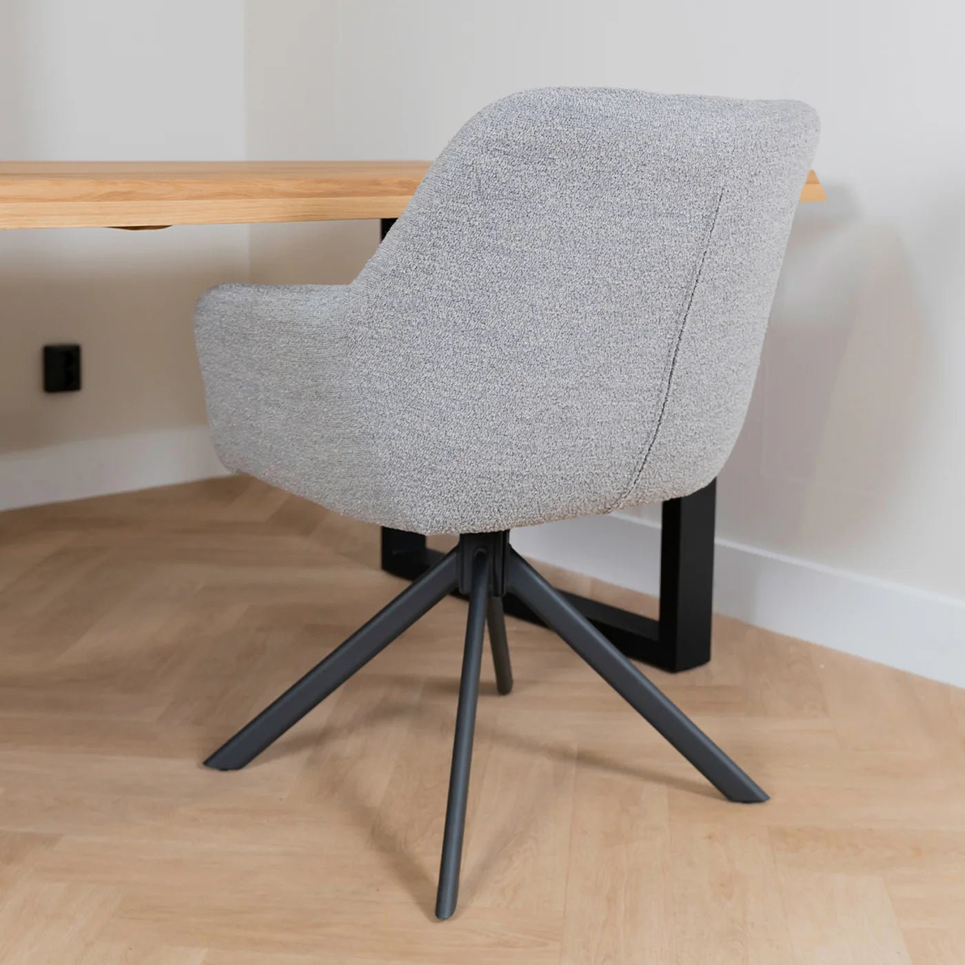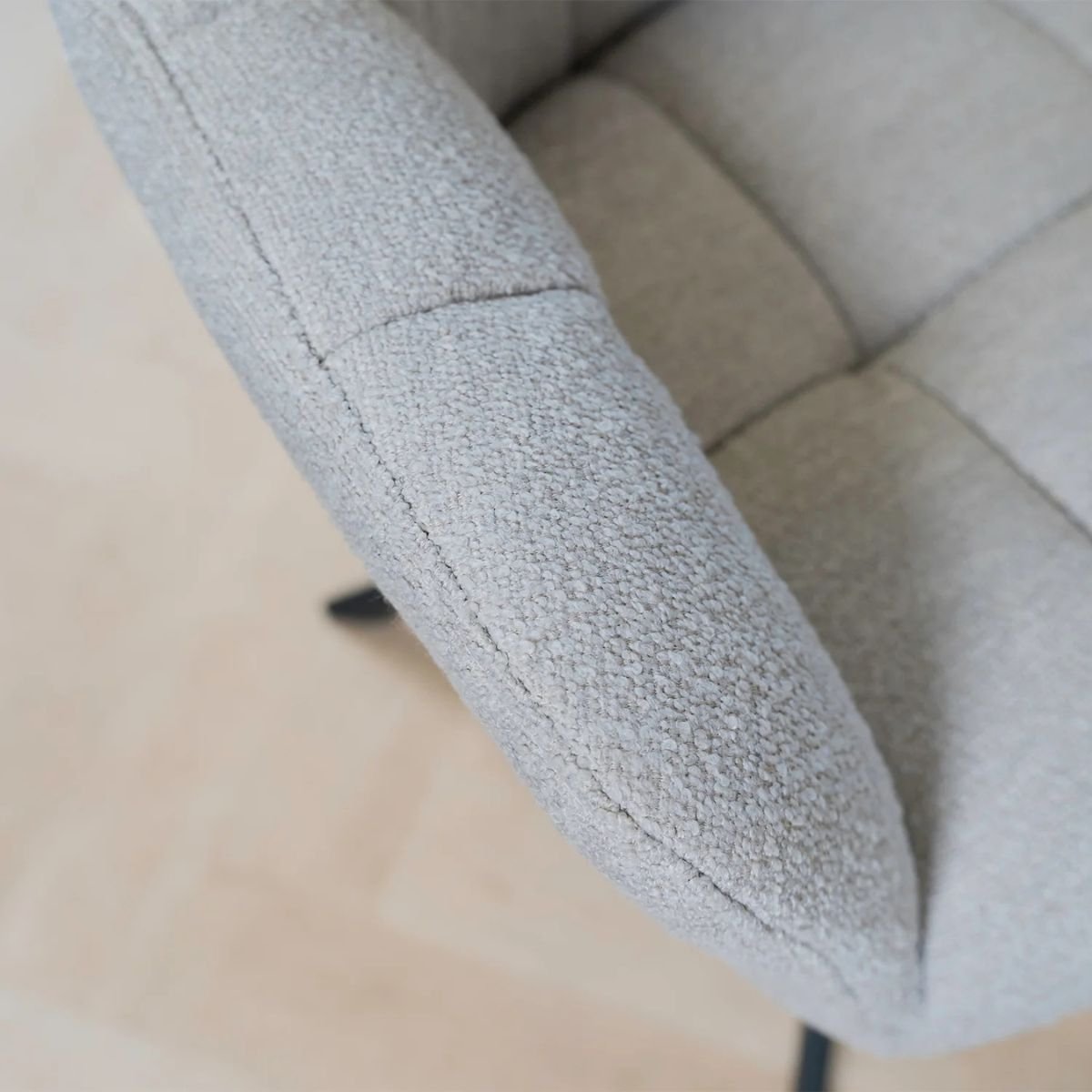 Eetkamerstoel Alba is een zeer comfortabele eetkamerstoel uitgevoerd in de zeer trendy Bouclé stof. Deze stof is zacht en warm en geeft uw interieur een zeer moderne en chique uitstraling.