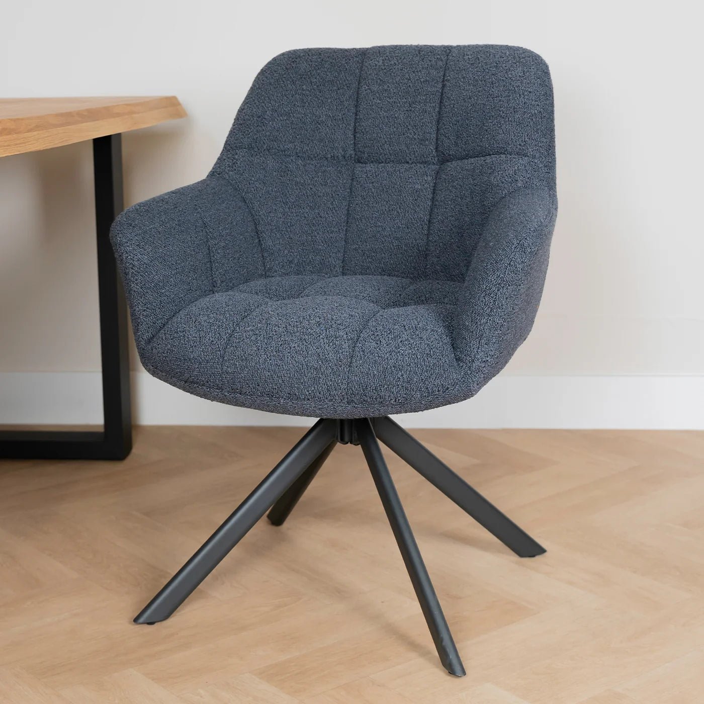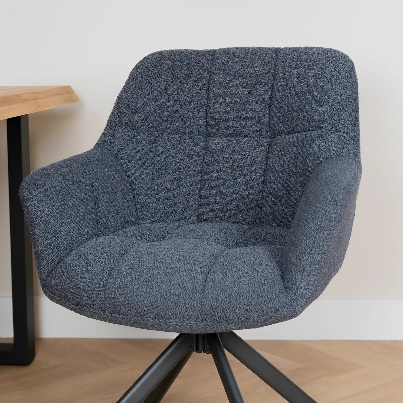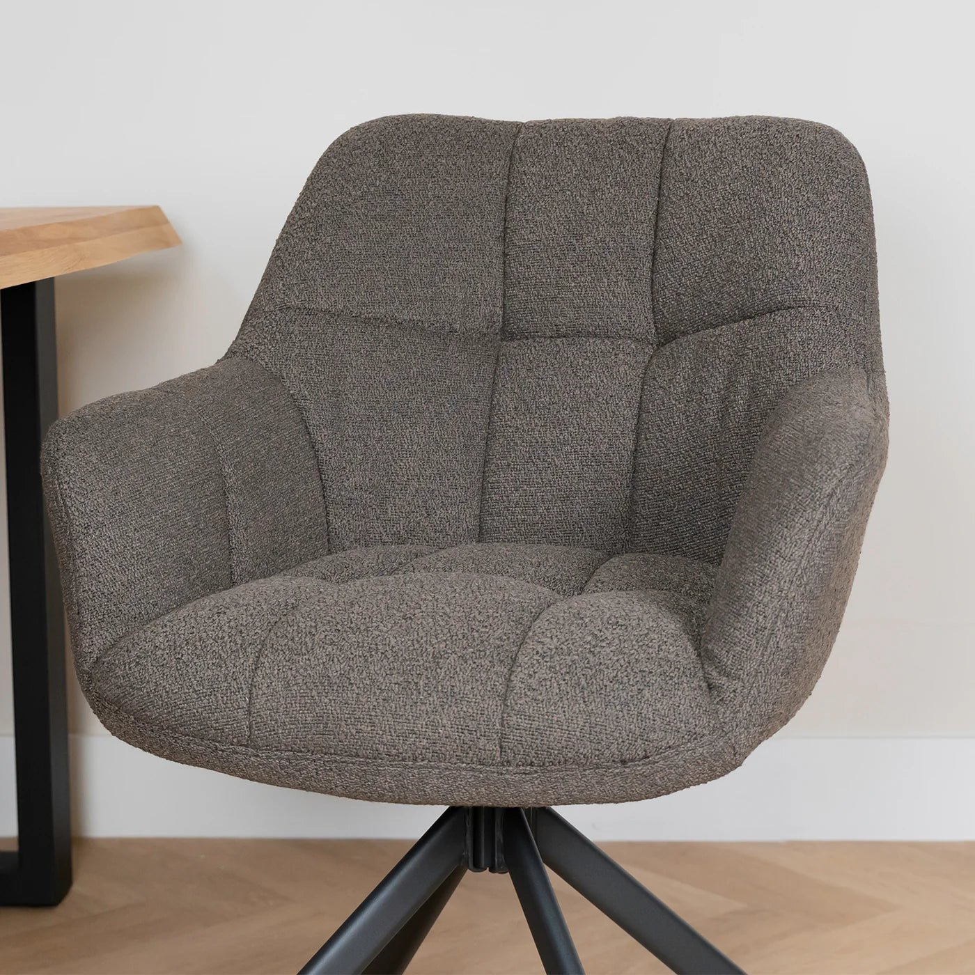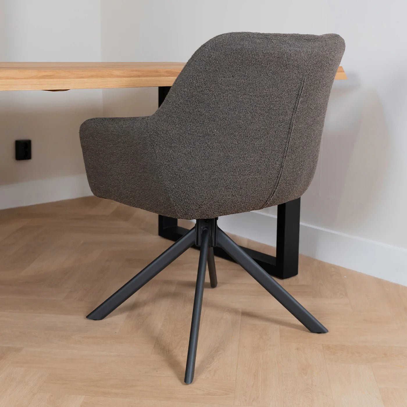 Eetkamerstoel Alba is een zeer comfortabele eetkamerstoel uitgevoerd in de zeer trendy Bouclé stof. Deze stof is zacht en warm en geeft uw interieur een zeer moderne en chique uitstraling.