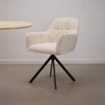 LUC is de perfecte balans tussen comfort, stijl en functionaliteit. Dankzij de draaibare basis van 180 graden biedt LUC veel bewegingsvrijheid rond de tafel, terwijl het een moderne touch aan uw interieur toevoegt. De dikke chenille stof met luxe uitstraling creëert een warme en uitnodigende sfeer, terwijl de armleuningen zorgen voor extra comfort tijdens lange maaltijden of gezellige avonden.