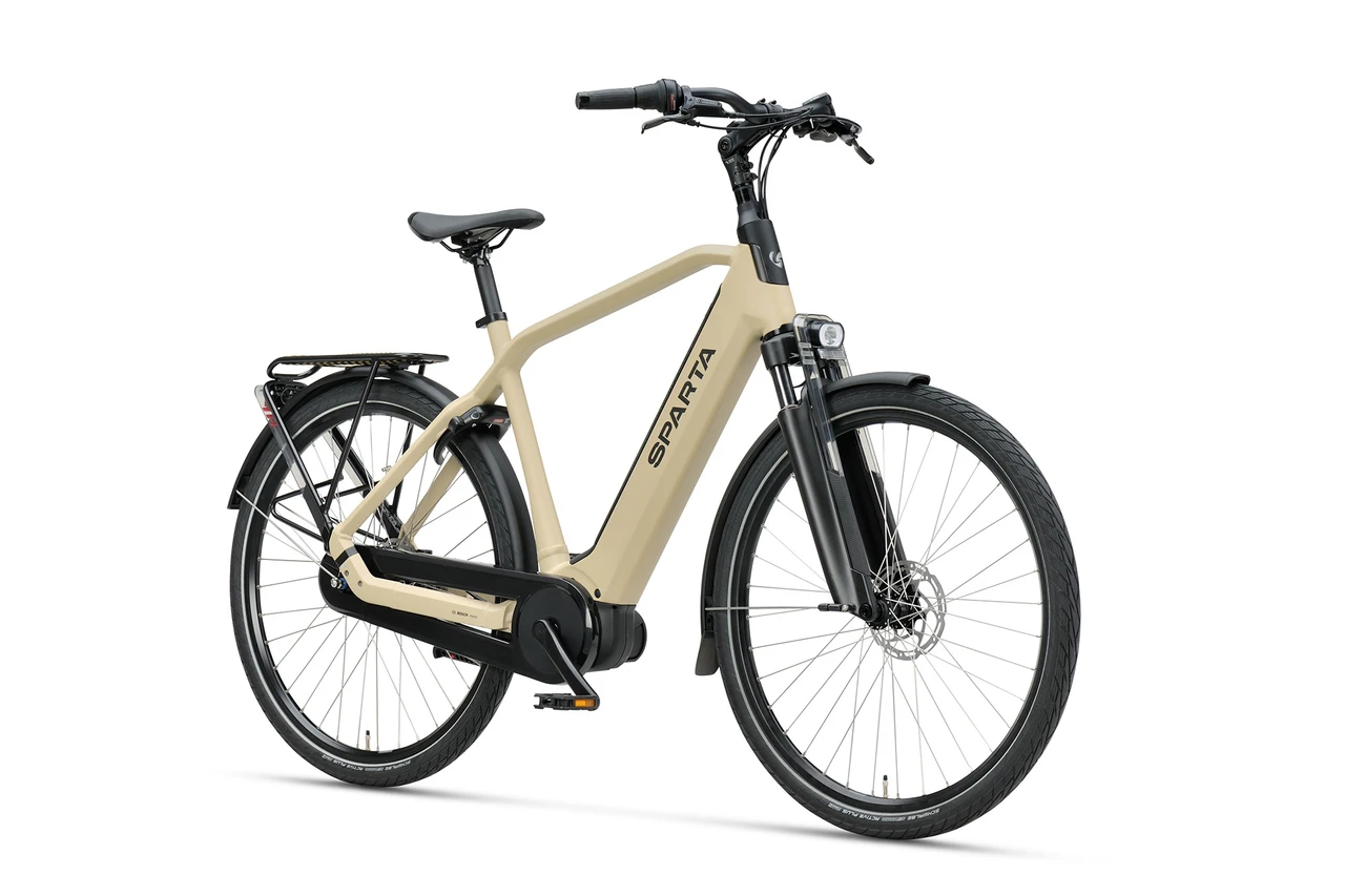 De geïntegreerde accu in het frame geeft de fiets een strakke uitstraling. Standaard is de Sparta d-Rule Fit uitgerust met een 400 Wh accu, goed voor een actieradius tot circa 110 kilometer. Wie meer bereik wil, kan kiezen voor een accu-upgrade tot 500 Wh of 625 Wh, waarmee ook langere tochten geen probleem zijn.